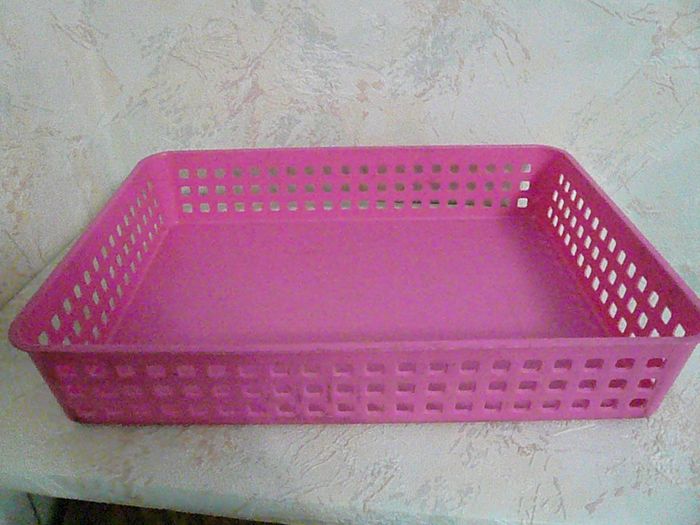 Panier de rangement couleur rose. Dimensions : 33 cm x 24 cm x h 6,5 cm. Très bon état.
