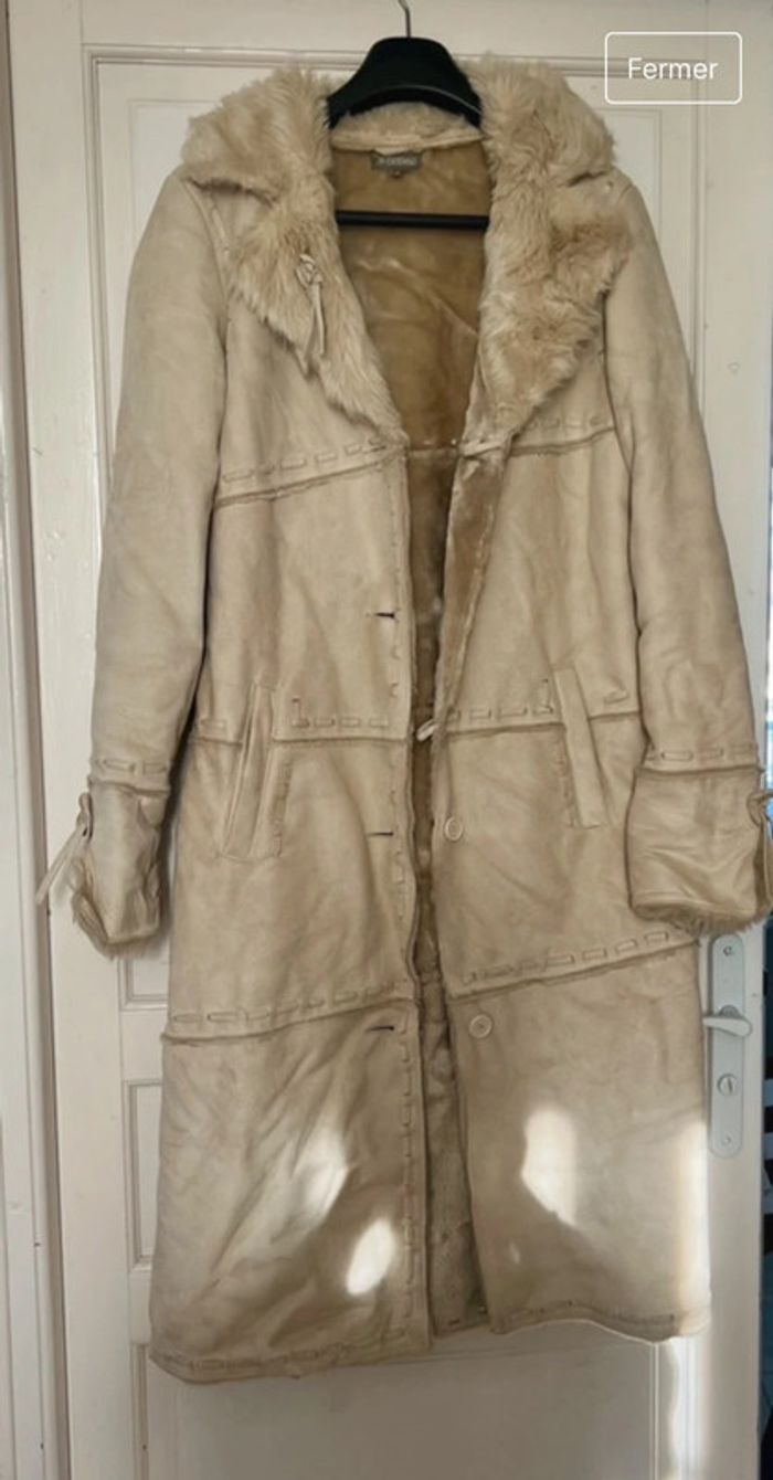 Manteau long beige fourrure synthétique taille M - photo numéro 2