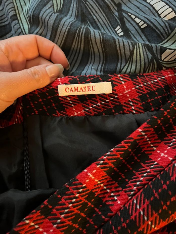 Jupe courte jacquard rouge et noir Noël taille 42 camaïeu - photo numéro 1