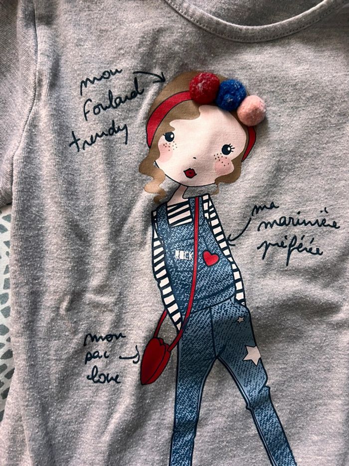 T-shirt petite fille, pompon taille six ans - photo numéro 2