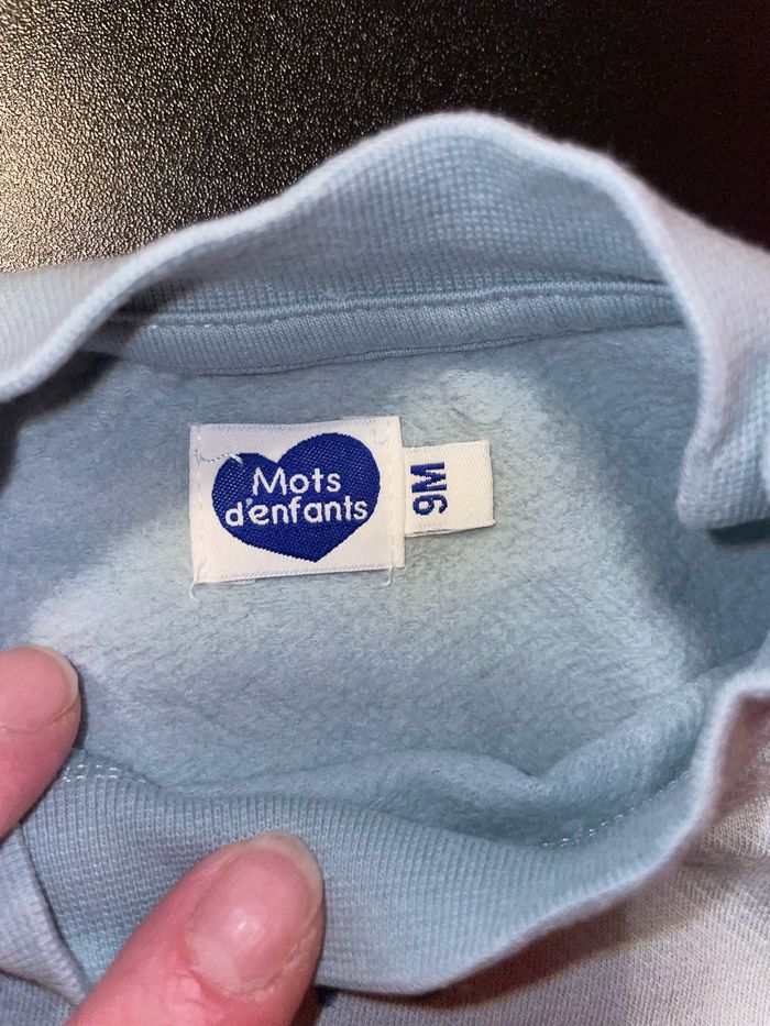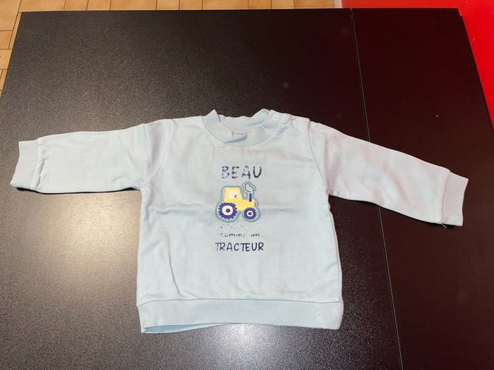 Sweat bleu clair motif tracteur 🚜 Taille 9 mois Marque Mots d’enfants Fermeture par pressions à l’épaule gauche #9mois #9moisgarcon