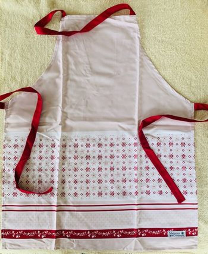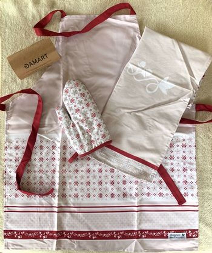 Ensemble 3 pièces blanc Damart Maisons et Campagne à motifs géométriques blanc/beige/bordeaux/gris. 100% coton - Tablier L81cm (mesure sans cou) - Gant L 25cm - Torchon 70 x 50cm Neuf, sans utilisation *petits points et taches d'origine, regarder photos ⛔️ Prix FIXES, NON négociables 🚨 👏🏻 Réductions sur les lots 👍🏻 #tablier #ensemblecuisine #fleurs #manique #gant #tapissechage #egoutoir #cc_divers