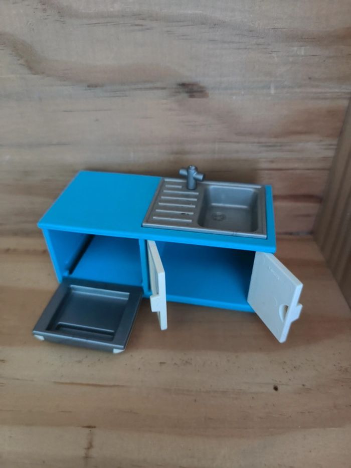 Playmobil cuisine bleu et blanche frigo gazinière évier lave vaisselle