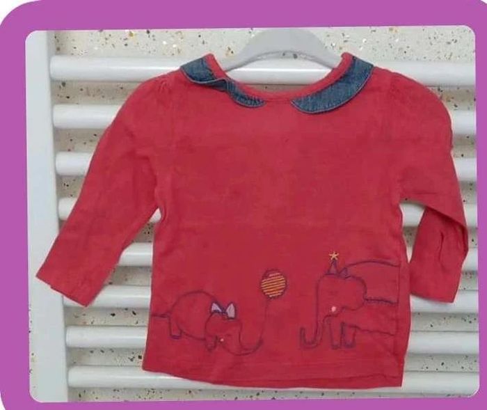 Tee shirt manche longue rouge imprimé éléphant col jeans DPAM Taille 6 mois #sycaro35 #sycaro356mois #taille6mois #sycaro35teeshirt #teeshirt #manchelongue #elephant #col #jeans #dpam A9061