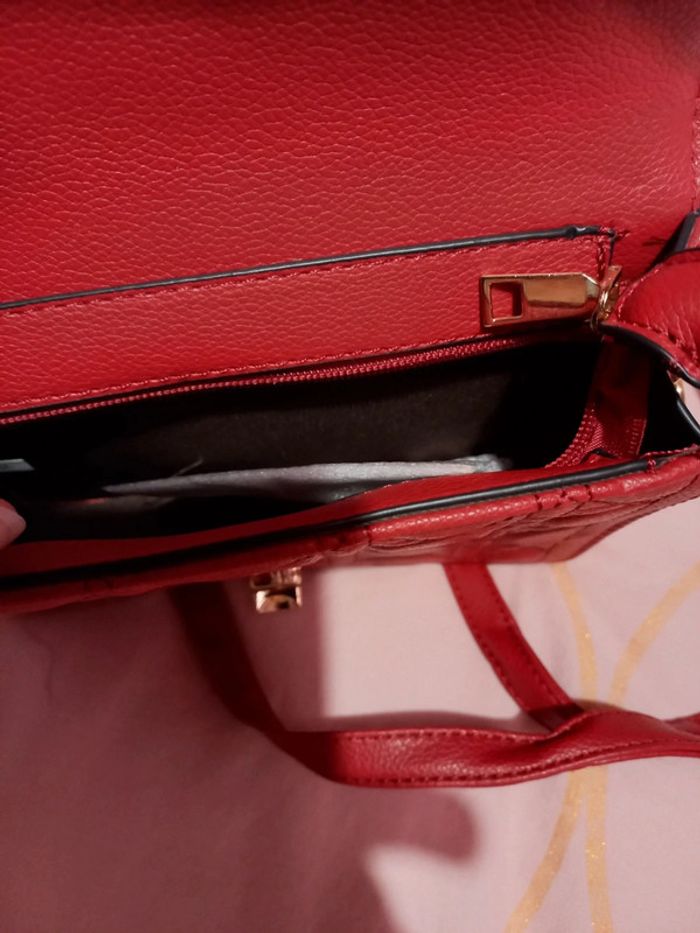 Très joli sac à main avec bandoulière vous permettra d avoir sur vous juste le nécessaire en toute élégance. Pochette minimaliste mais efficace. Rouge éclatant Hauteur 16 cm largeur 20 cm