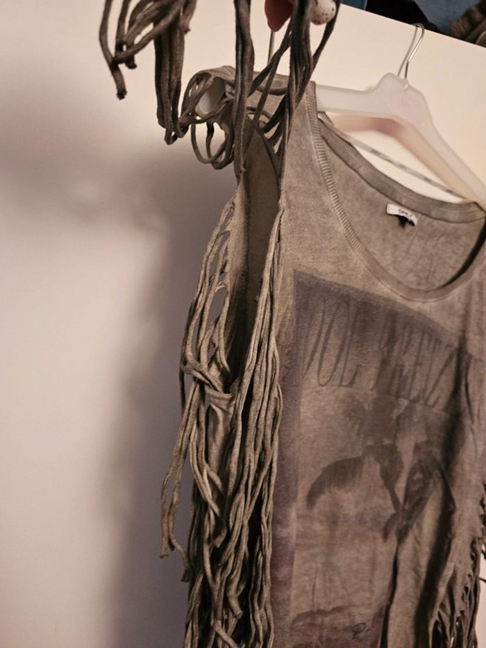 T shirt courte manche avec frange - photo numéro 3