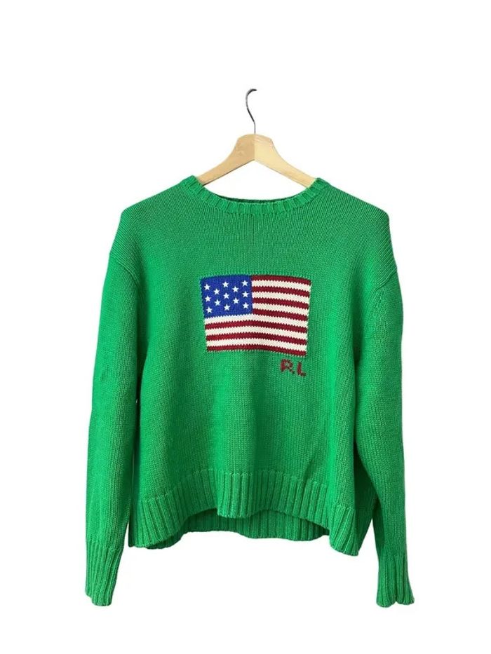 Pull col rond ralph lauren vert marine logo drapeau flag taille M 606D - photo numéro 1