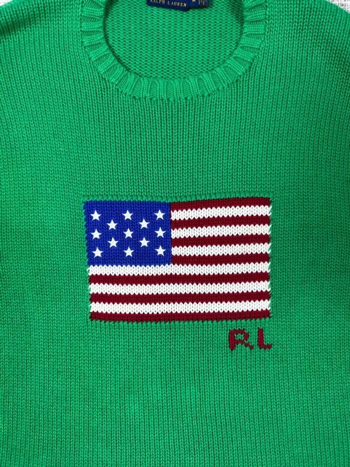Pull col rond ralph lauren vert marine logo drapeau flag taille M 606D - photo numéro 2