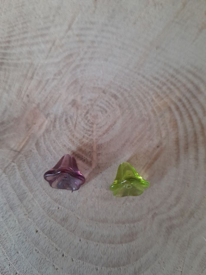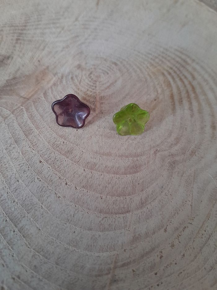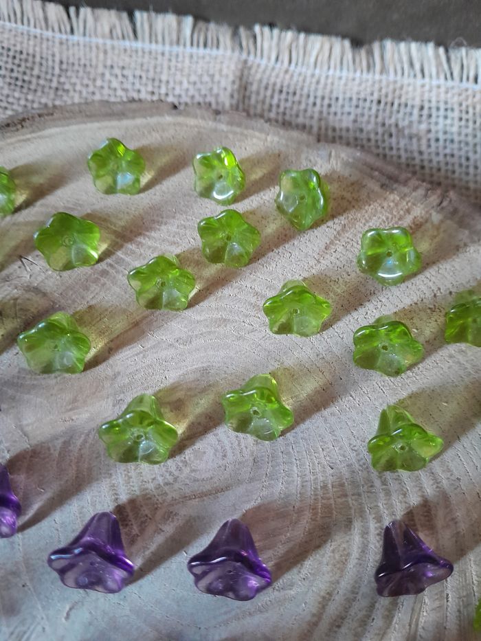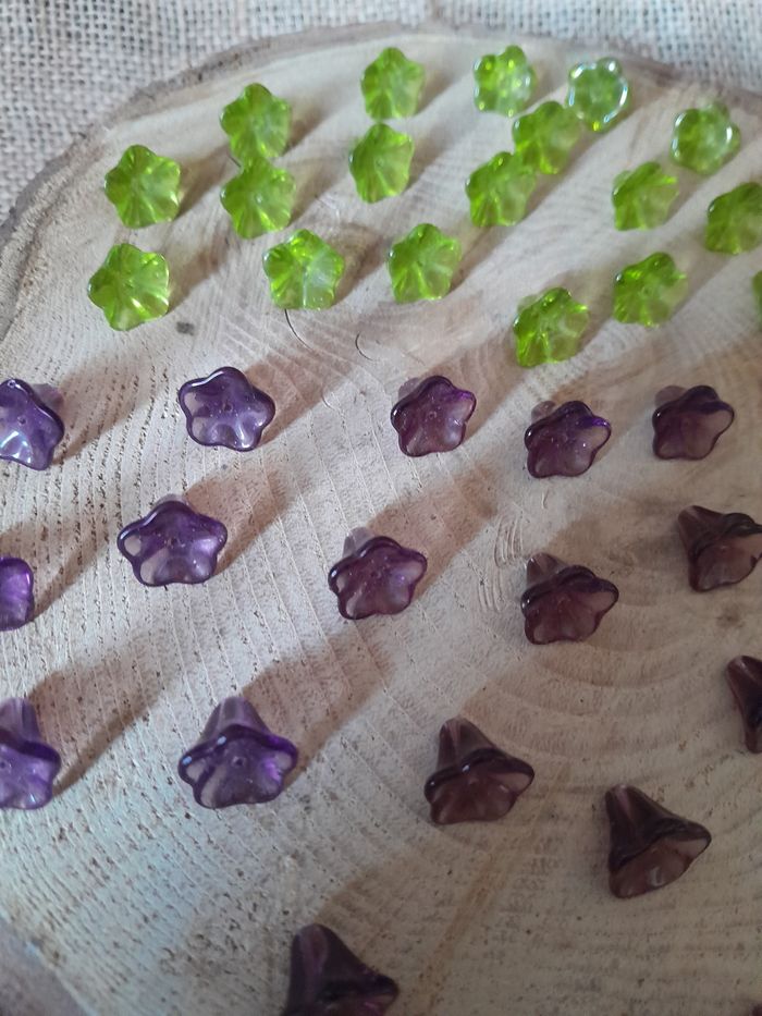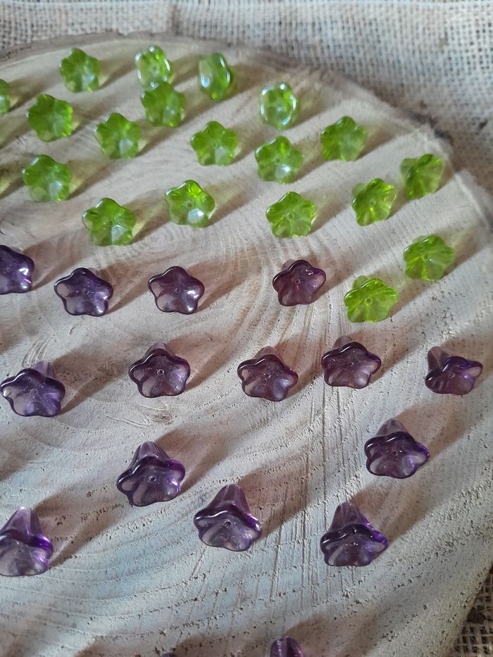 Lot de 50 perles en verre fleurs violette et vertes. - photo numéro 10