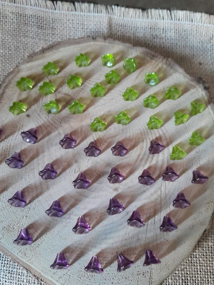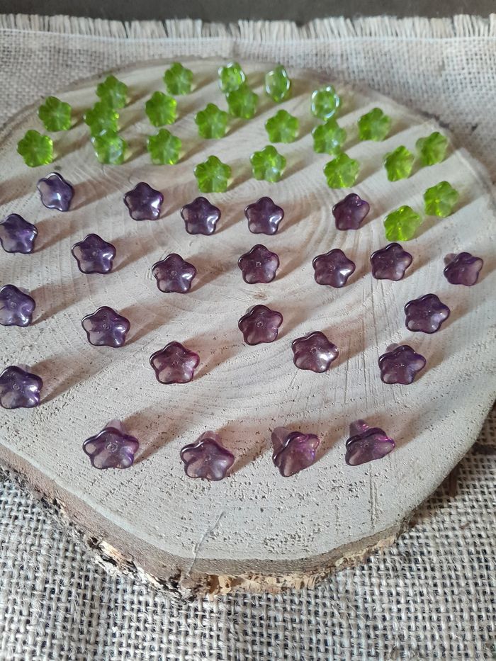 Lot de 50 perles en verre fleurs violette et vertes. - photo numéro 9