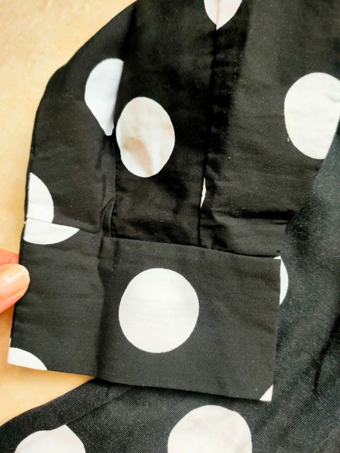Noire à point blancs Manches 3/5 Col rond Ceintrée 2 matières différentes entre les bras et le reste Achetée en Angleterre par ma nièce mais elle ne l'a jamais portée Valeur neuve environ 23€ #didinedorataille38 #zara #robeàpois #robeamanche #angleterre