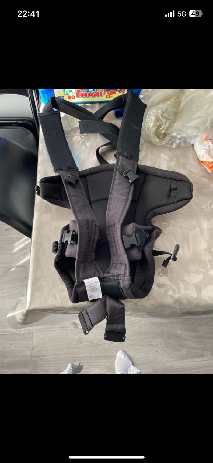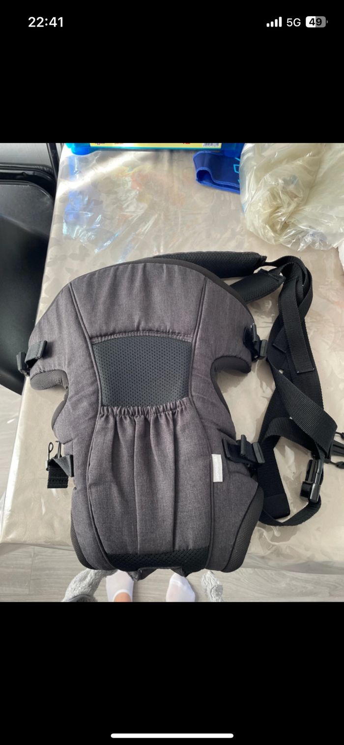 Utiliser 3 fois, idéal pour les balades ou le rangement de la maison tout en ayant bébé en portage. Acheté neuf chez Vertbaudet