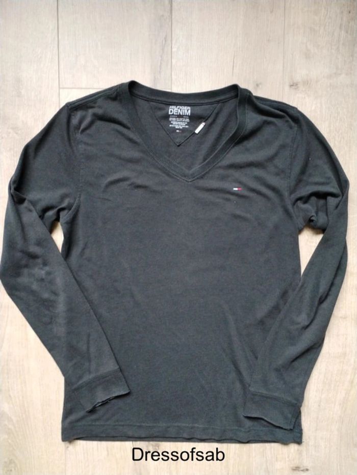 Tee-shirt manche longue tommy Hilfiger ✓💯 %original ✓en très bon état ✓col légèrement en v côtelé ✓logo sur la poitrine ✓manche effet découpe ✓conviens pour taille s petit m ✓envoie sous 2 jour ✓prix négociable #tsfemmedressofsab #tmfemmedressofsab