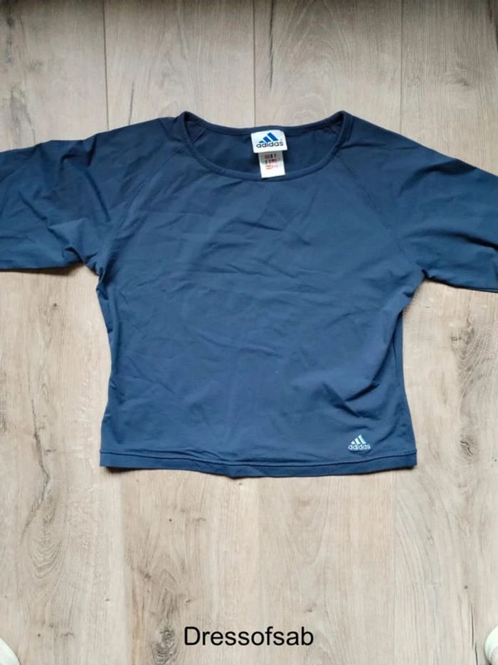 Jolie haut sportif vintage pour femme ✓💯 %original ✓matiere stretch et respirante ✓manche 3/4quart qui se retroussé ✓en excellent état malgres qu'il est de 2001 ✓col rond ✓coupe courte effet petit crop top ✓envoie sous 2 jour ✓prix négociable #tlfemmedressofsab