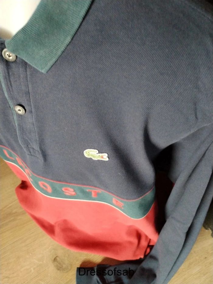 Polo longue manche Lacoste homme 🥼💯 Authentique 👕 Très bon état 👕 Logo brodée 🥼 Taille 5 Lacoste 🥼Legere trou recousu a l'arrière mais ne ce vois pas (photo) 📏 Épaule 50cm 📏Longueur 70cm 📦 Envoie sous 2 jour 💰Prix négociable