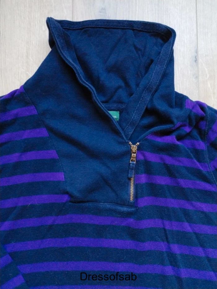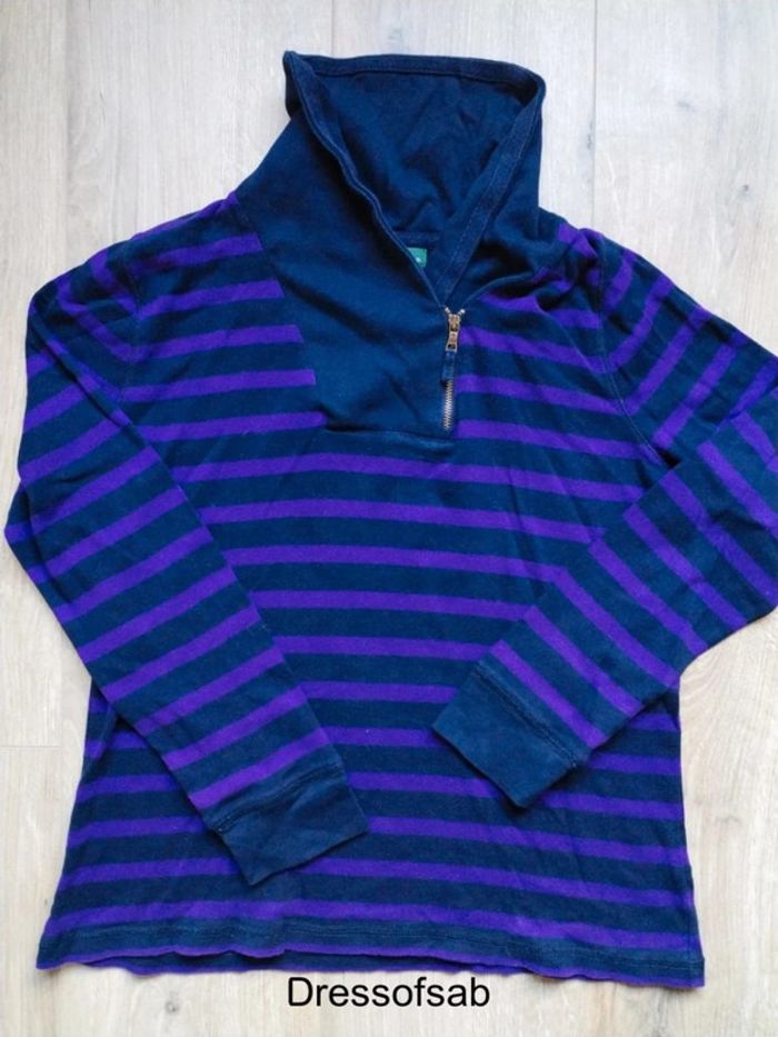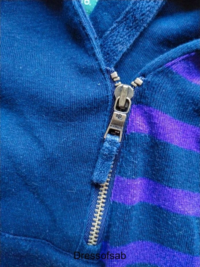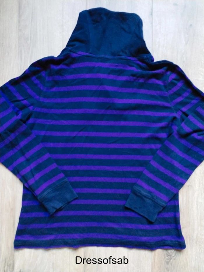 Jolie pull léger femme Lauren Jeans CO. ✓💯 %original ✓en très bon état ✓col haut et fermeture éclair avec Zip gravée de la marque ✓rayé bleu foncé et violet ✓léger défaut dans le bas (recousu) mais ne ce vois pa s ✓envoie sous 2 jour ✓prix négociable #tlfemmedressofsab