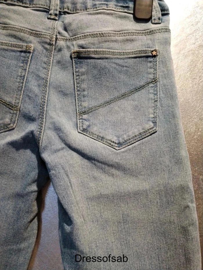 Jolie jean fille de chez kiabi ✓excellent état ✓effet déchire au cheville ✓fermeture bouton pression et éclair ✓réglable à la taille ✓ poche avant et arrière ✓taille haute et pantalon taille légèrement large ✓envoie sous 2 jour ✓prix négociable