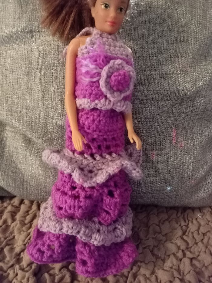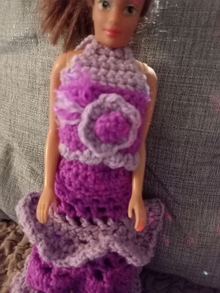 Jupe longue et haut fait au crochet . Pour poupée mannequin / Barbie . Neuf 🌸