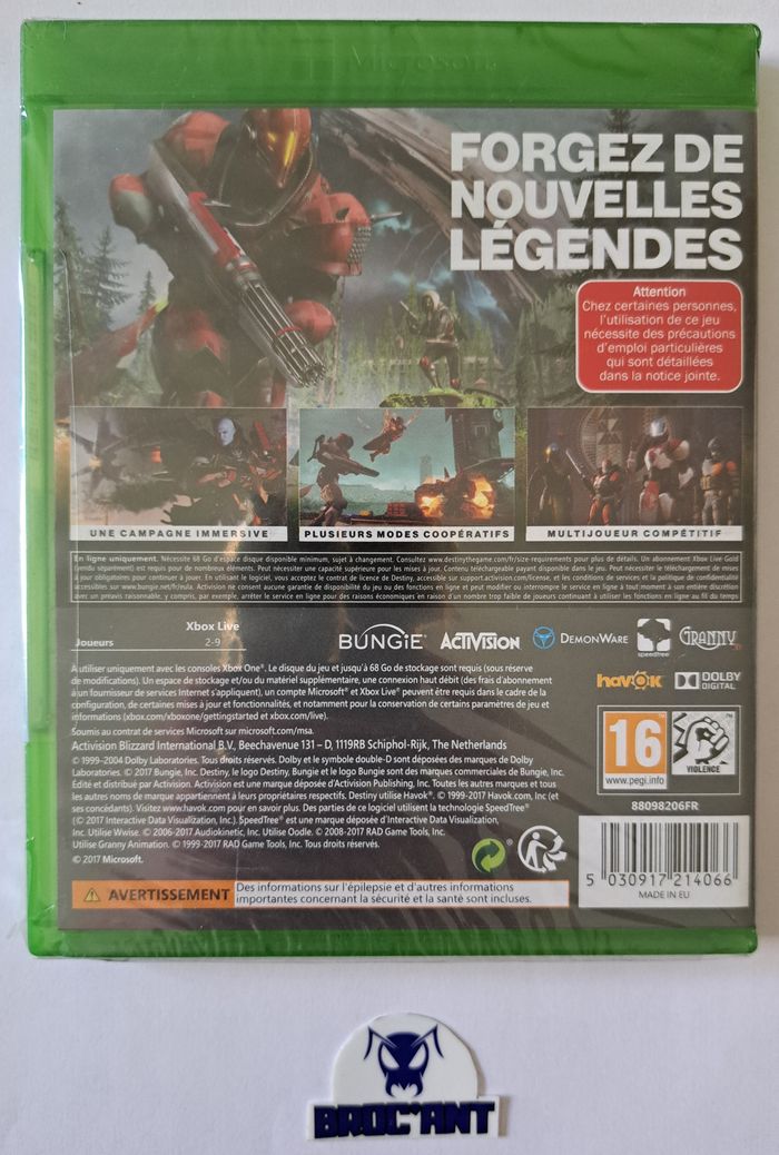 Microsoft Xbox One : Destiny 2 PAL État : 1 scellé avec autocollant jamais ouvert (sans blister) et 3 sous blister scellé jamais ouvert, boites françaises Prix à l'unité Envoi suivi, rapide et soigné (vente directe possible à Berck). Plusieurs articles vous intéressent ? Créez un lot pour rentabiliser les frais d'envoi. Besoin d'autre(s) renseignement(s) ? Contactez moi. Broc'Ant / Jouets – Jeux Vidéo – Brocante – Collection #brocant #brocantxbo #brocante #vintage #retro #ancien #collection #retrogaming #microsoft #xbox #xboxone #xboxseries