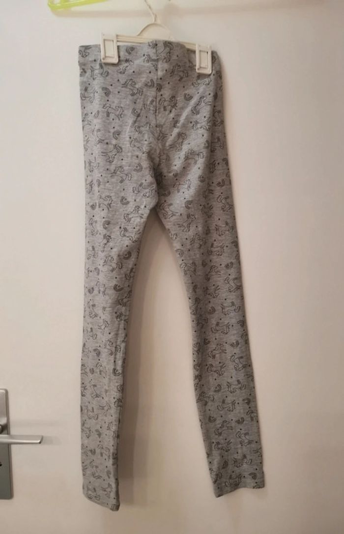 Legging kiabi 10 ans gris motif licorne. En bon état car traces de légère usure aux genoux et fesses, voir les photos #emilie77127fille10ans #legging #licorne