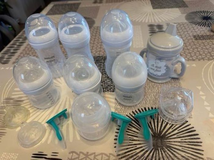 -3 biberons 260ml - 4 biberons 125ml - 1 gobelet d’apprentissage - 3 valves anti coliques - 3 tétines numéro 2 - 1 tétine numéro 1 - 1 tétine numéro 3 - 1 tétine numéro 5