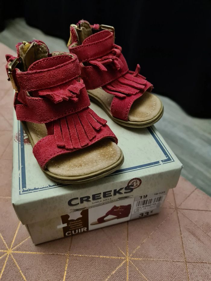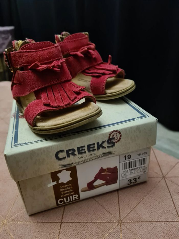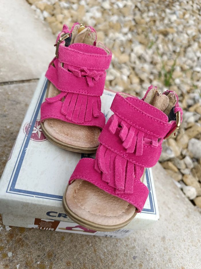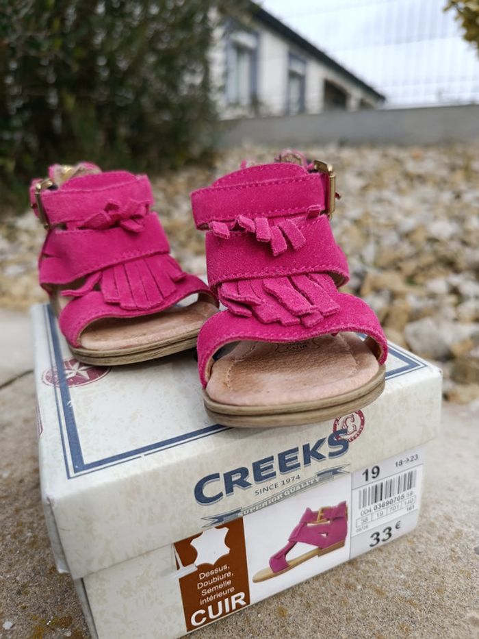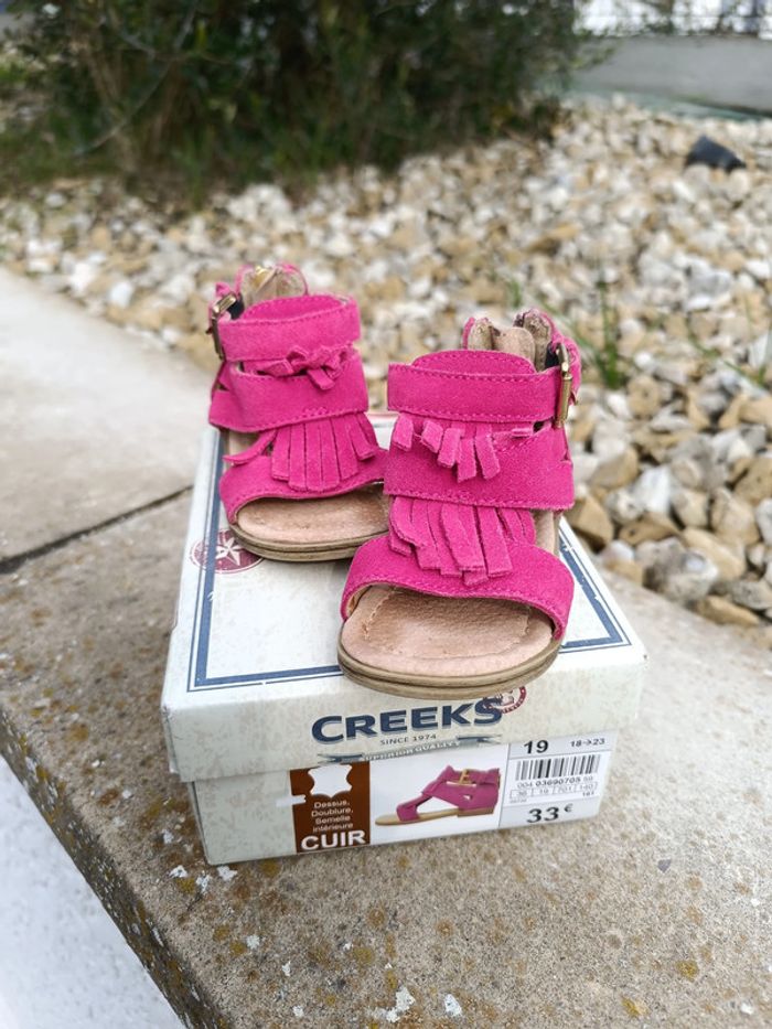 Nu pied fille 19 cuir Nu pied fille 19 cuir dessus et semelle Cuir état neuf rose fushia Taille 19 vendue avec boîte d'origine #lolashoes19 #creeks