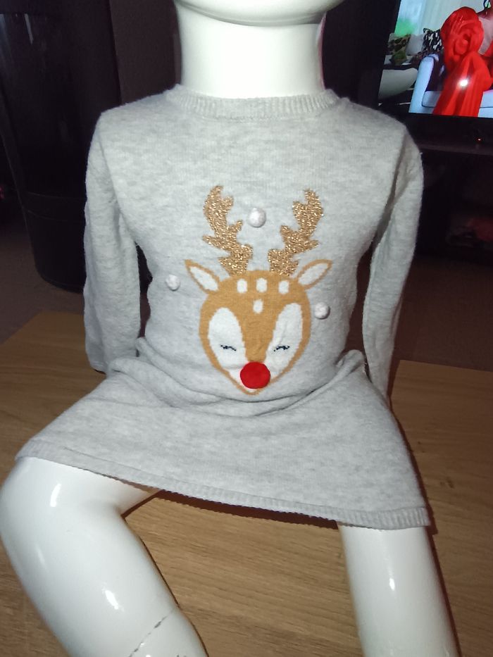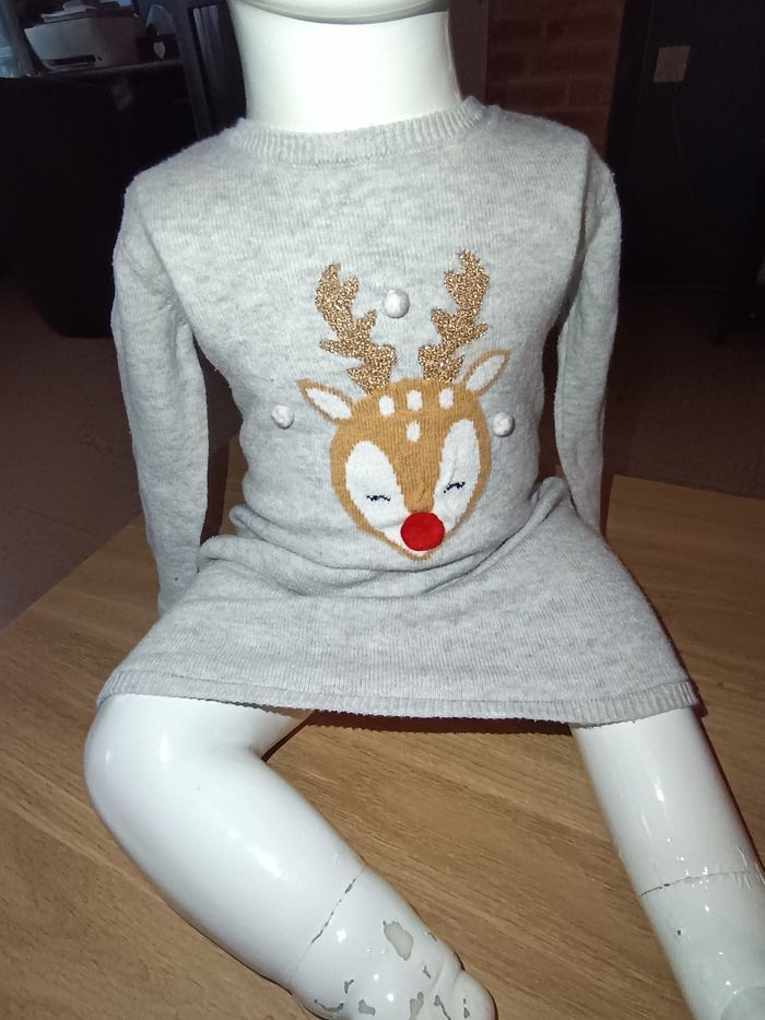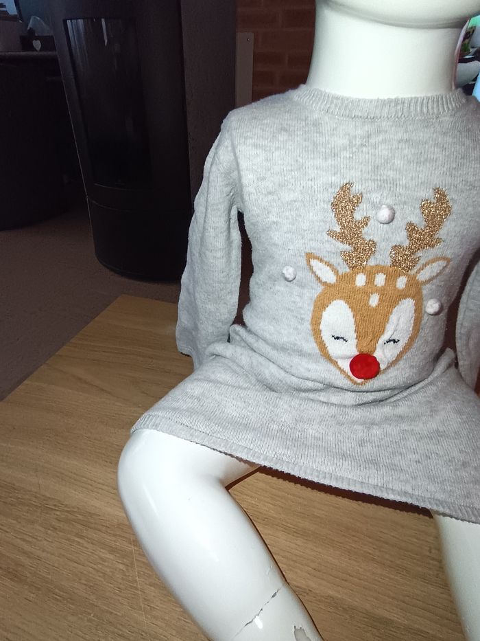 Robe pull Gris et blanc Motifs rennes Taille 9 mois #robepull #blanc #gris #rennes #9mois #fille #marylene025fille9mois
