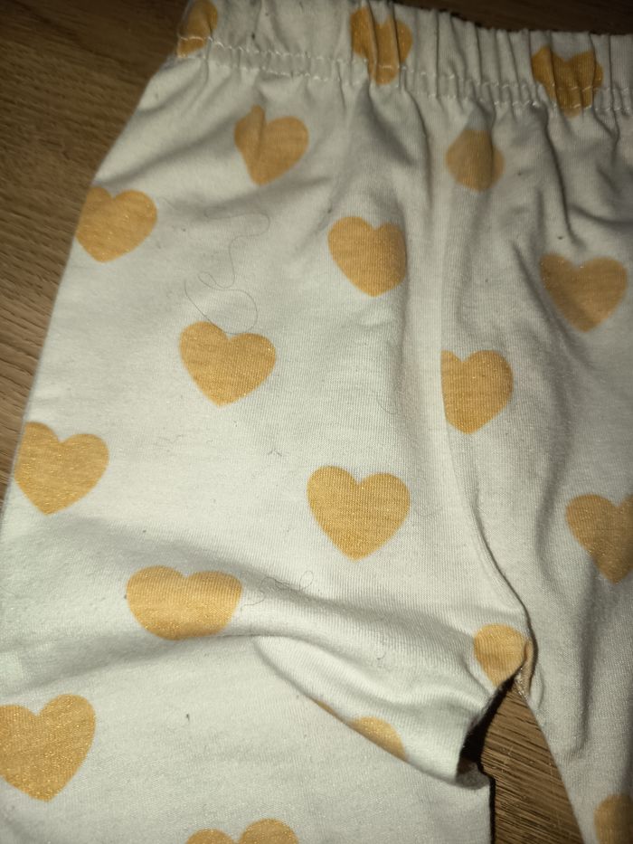 Legging blanc à motifs coeurs dorés Taille élastique 9 mois #legging #legginglong #blanc #dore #coeur #9mois #marylene025fille9mois