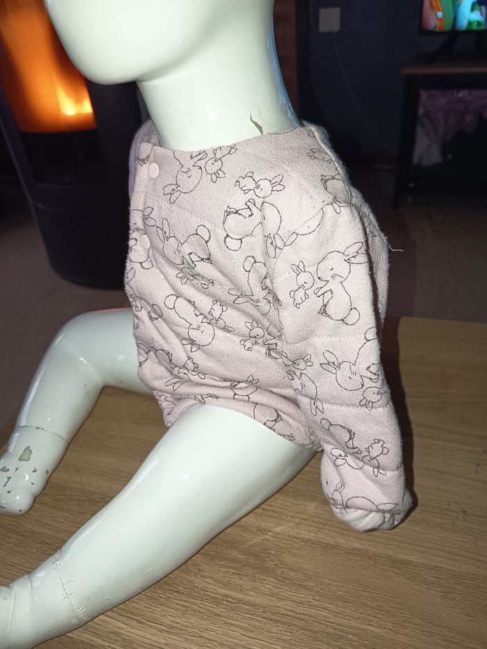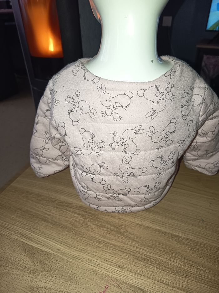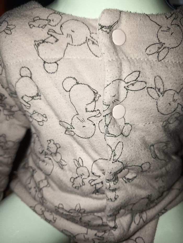 Gilet épais Rose pâle Molleton Motifs lapins Rayures à l'intérieur Taille 9 mois #gilet #veste #rosepale #lapin #rose #9mois #fille #marylene025fille9mois