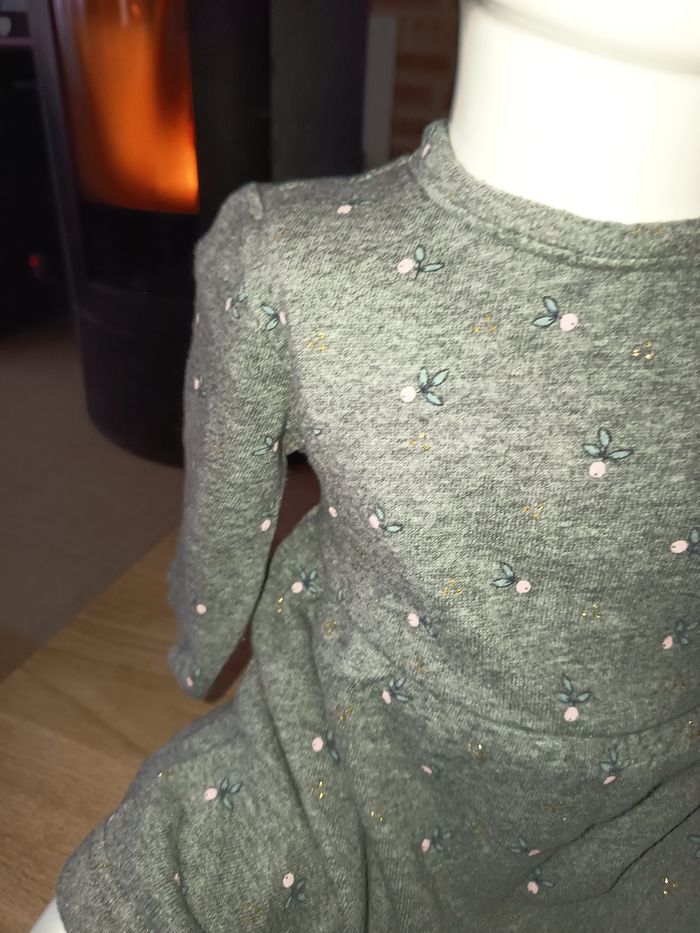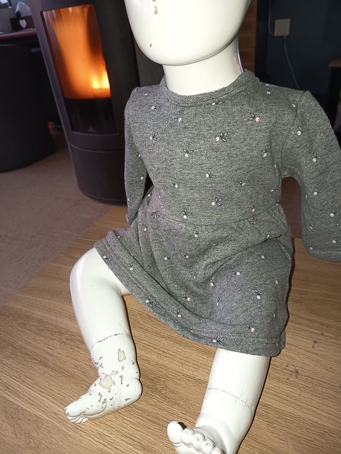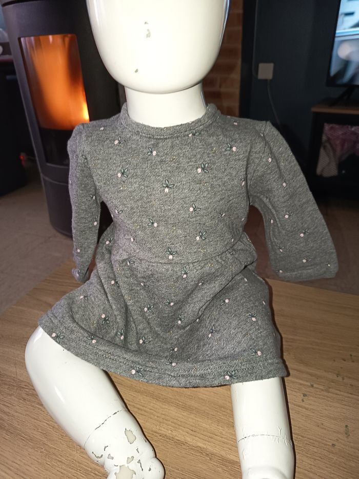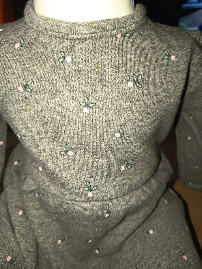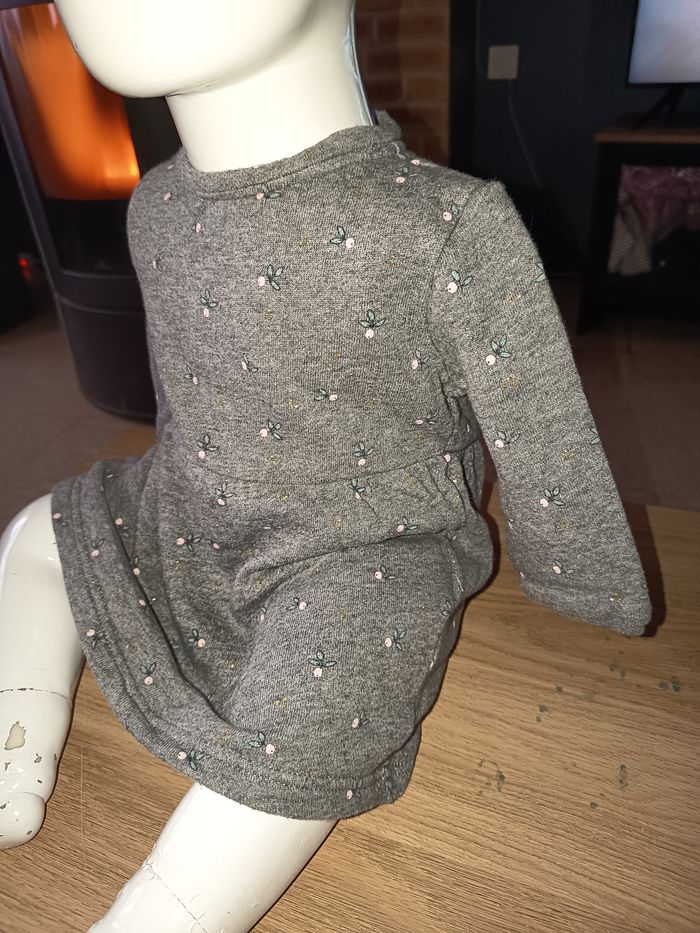 Robe manches longues grise Molleton Évasé dans le bas Pressions dans le dos Motifs fleurs Taille 9 mois 100% coton #fille #robe #robecourte #gris #fleurs #9mois #marylene025fille9mois