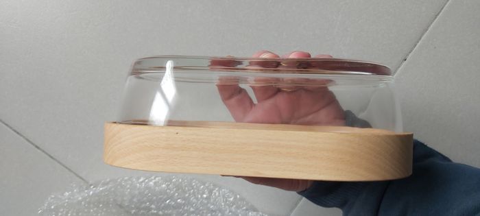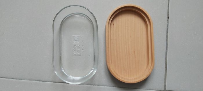 Beurrier en verre, avec couvercle et support en bois de hêtre #carineddiartdetable