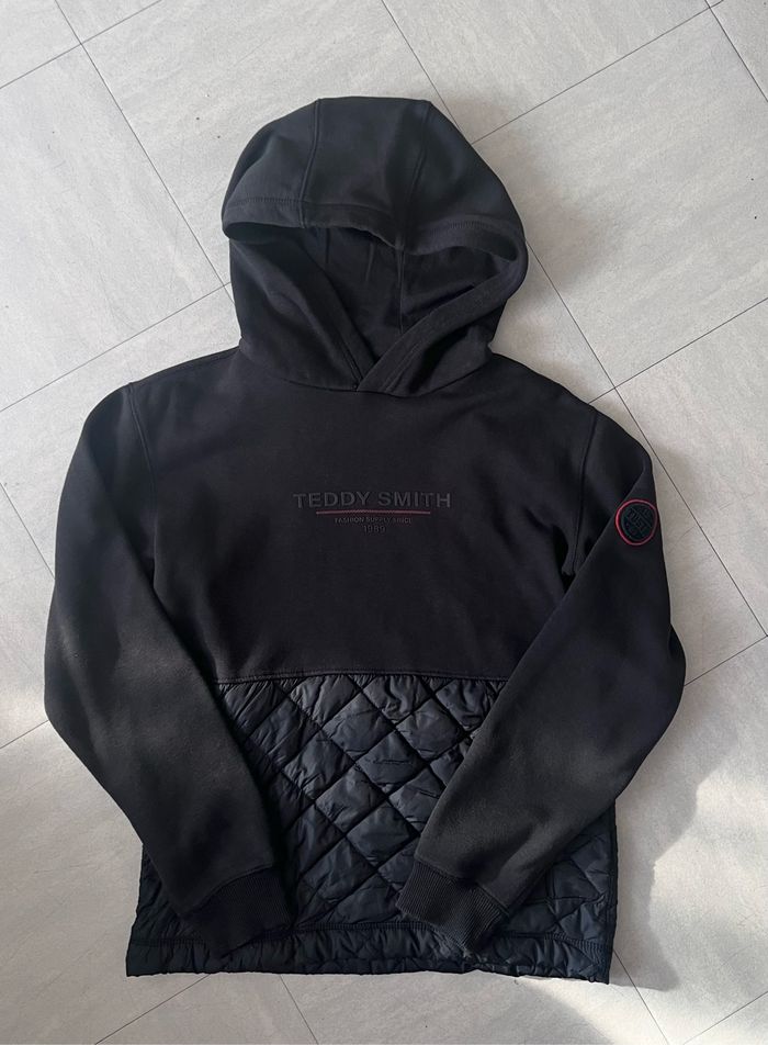 Sweat à capuche, pull Teddy Smith Sweat shirt de qualité épais Taille 16 ans Unisexe Coloris noir Matelassé devant et derrière sur le bas 52 % coton 48 % polyester Poches devant qui se rejoignent Peu porté car à vite grandi ... Maison non fumeur et sans animaux 📩Je réponds rapidement aux messages 📦Envoi rapide et so