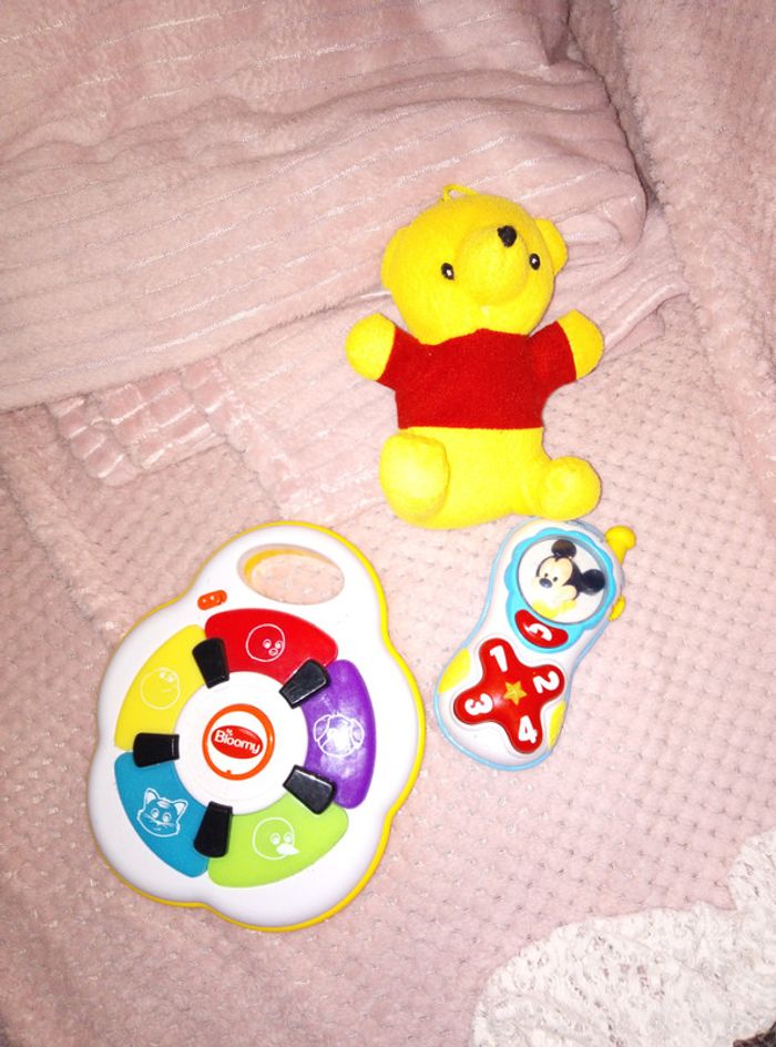 Lot 3 jouets bébé le téléphone mickey piles à changer