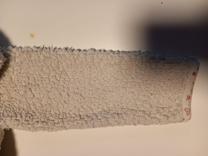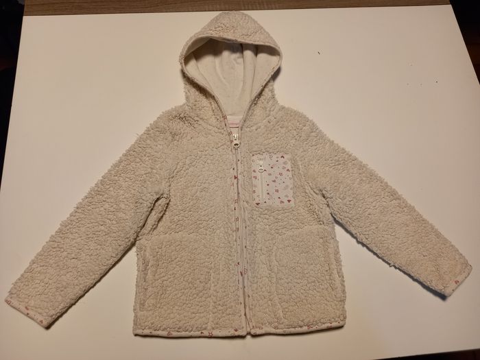 Gilet genre mouton, taille 110cm. 3 poches. Un peu usé au niveau des coudes mais encore bien. (Voir les photos)