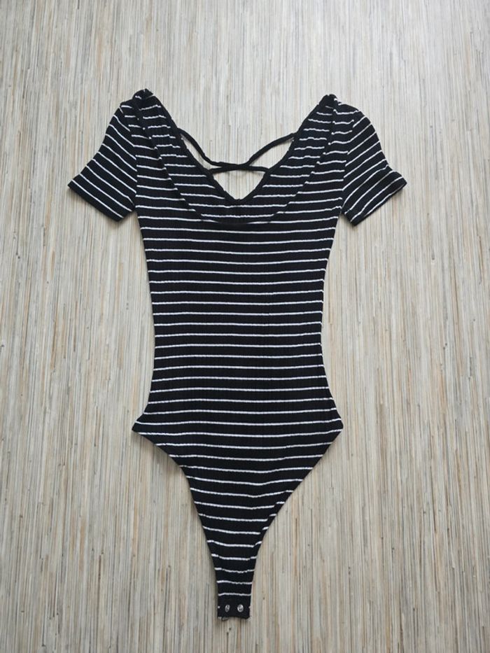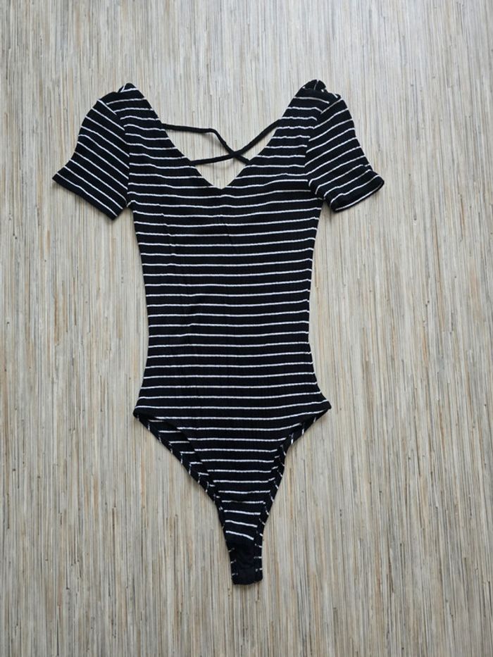 Body noir rayé blanc Jennyfer Taille XS En très bon etat général.