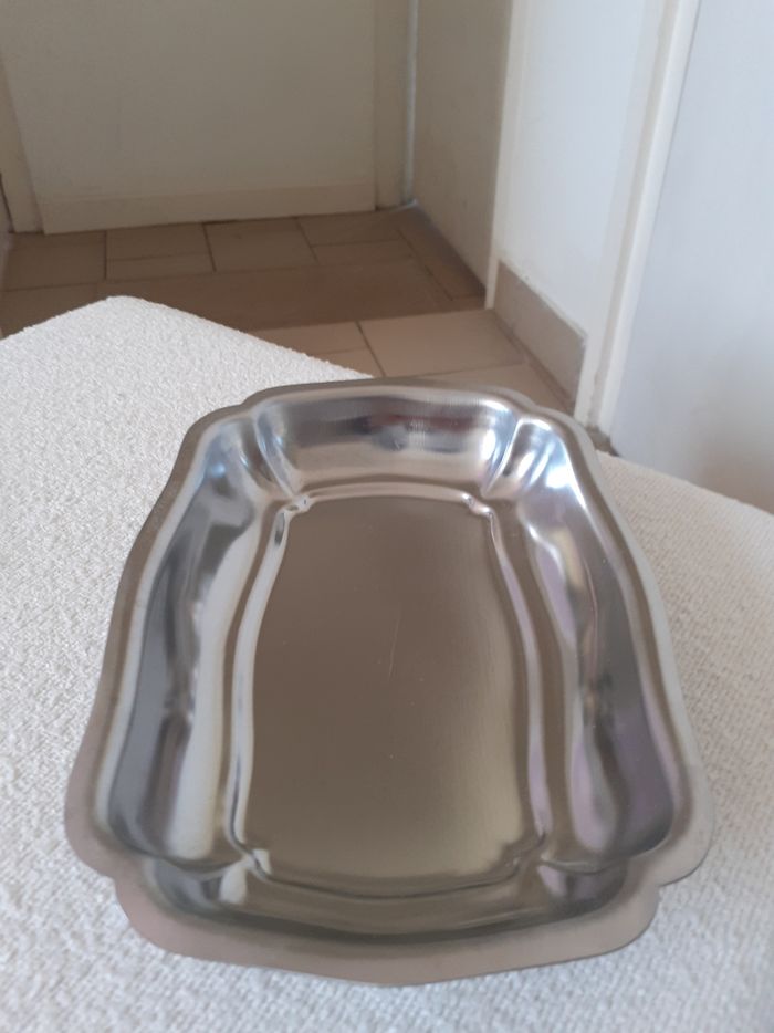 Lot de 2 petits plats en inox. 1 ovale et 1 rectangle Très bon état.