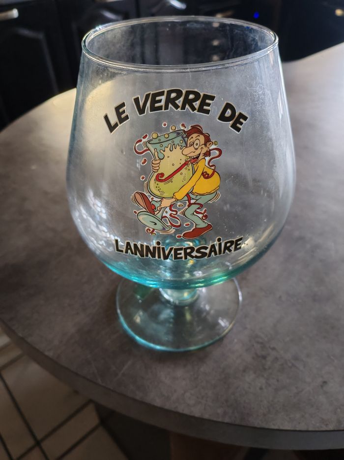 Gros verre d'anniversaire 2,5 litres. 26 cm de haut.