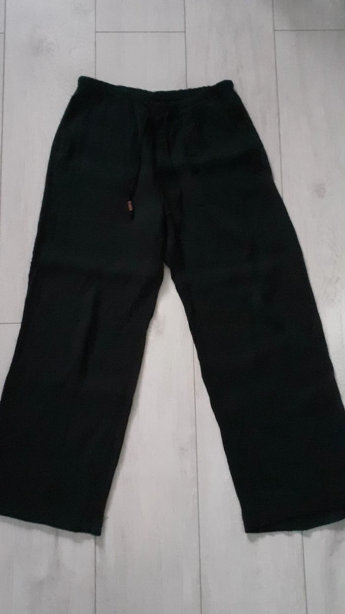 Pantalon large fluide été marque Zara taille XS coloris noir avec taille élastique et lien pour resserrer à la taille #jenni1428_fille_XS