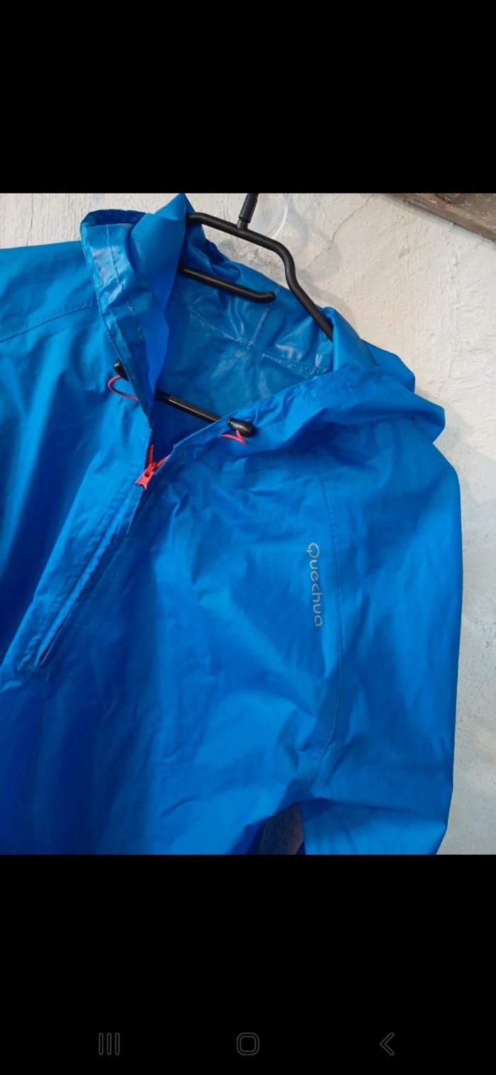 Imperméable avec capuche. Zippé sur le haut. Cordon au niveau de la.taille pour le resserrer. En très bon état