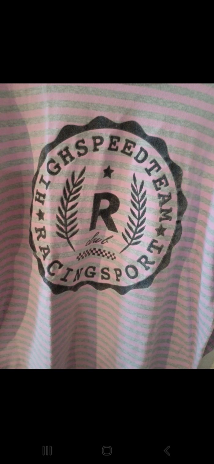 T.shirt manches longues à rayures et motif à l avant. En très bon état