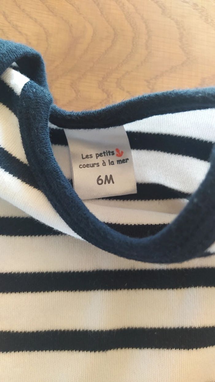 Bonjour Je vends un bodie manches longues Petit coeur à la mer 6 mois Très bon état