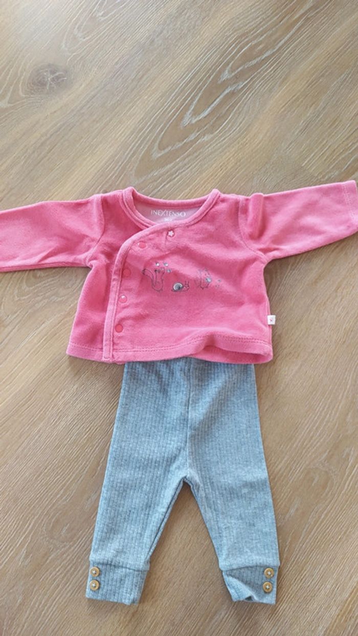 Bonjour Je vends un ensemble fille 1 mois (56 cm) In extenso En très bon état (Pas eu le temps de le mettre)