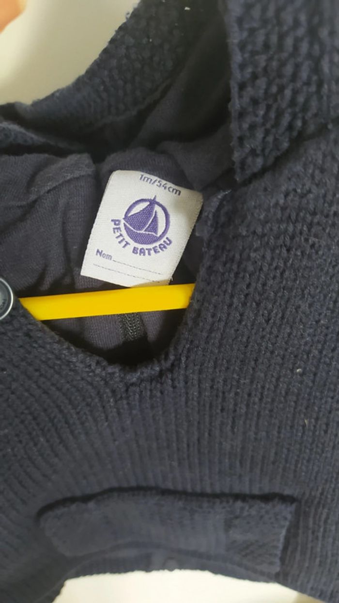 Bonjour Je vends un pull capuche petit bateau taille 1 mois (54cm) En bon état Très pratique, fermeture éclair dans le dos sur toute la hauteur