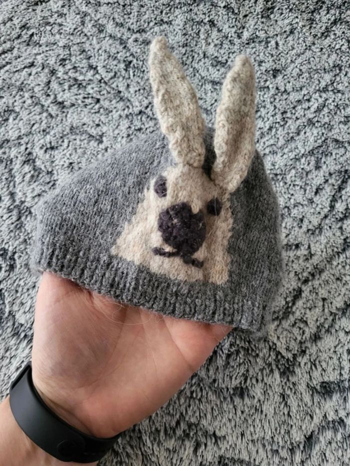 Bonnet tricoté main lapin bébé 6 mois - photo numéro 1