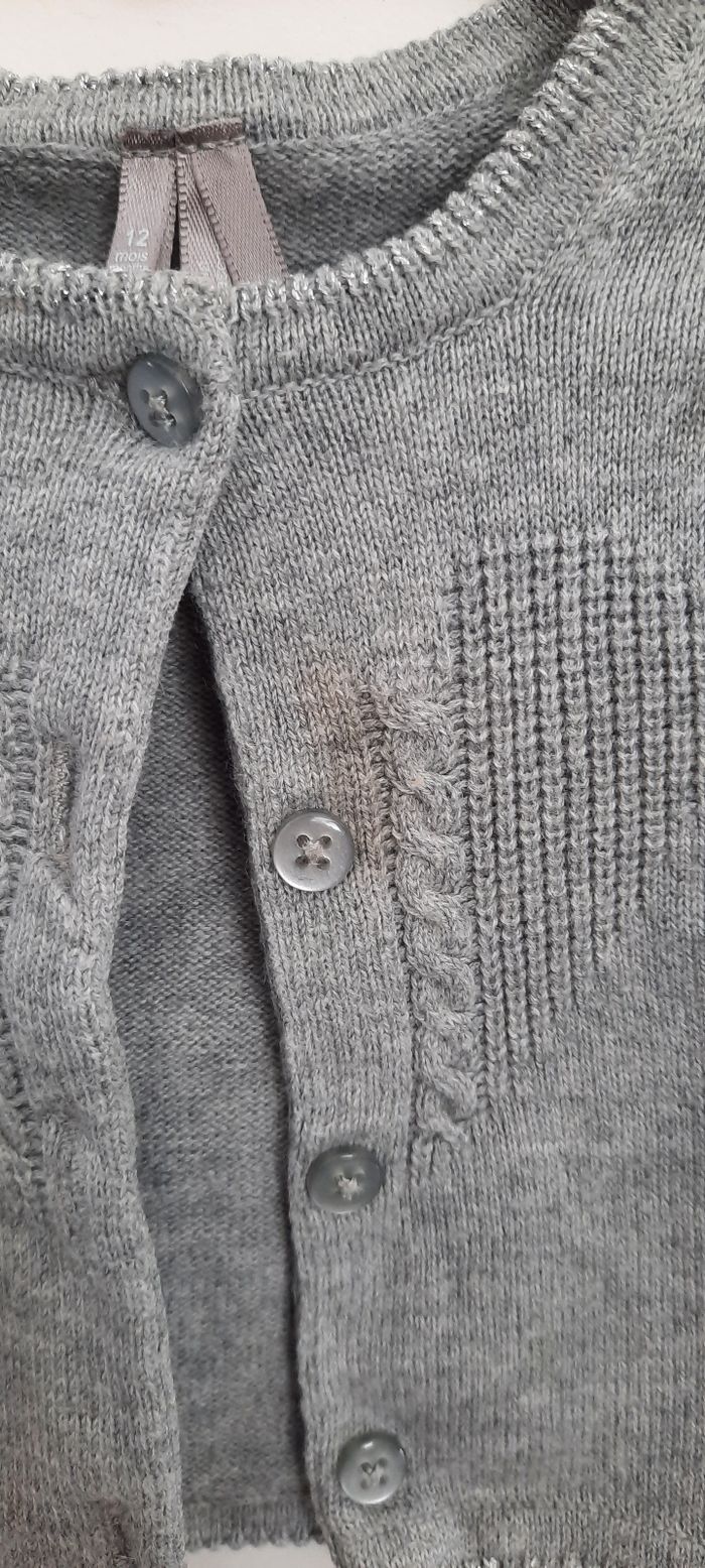 Gilet gris 12mois Une tâche au niveau des boutons