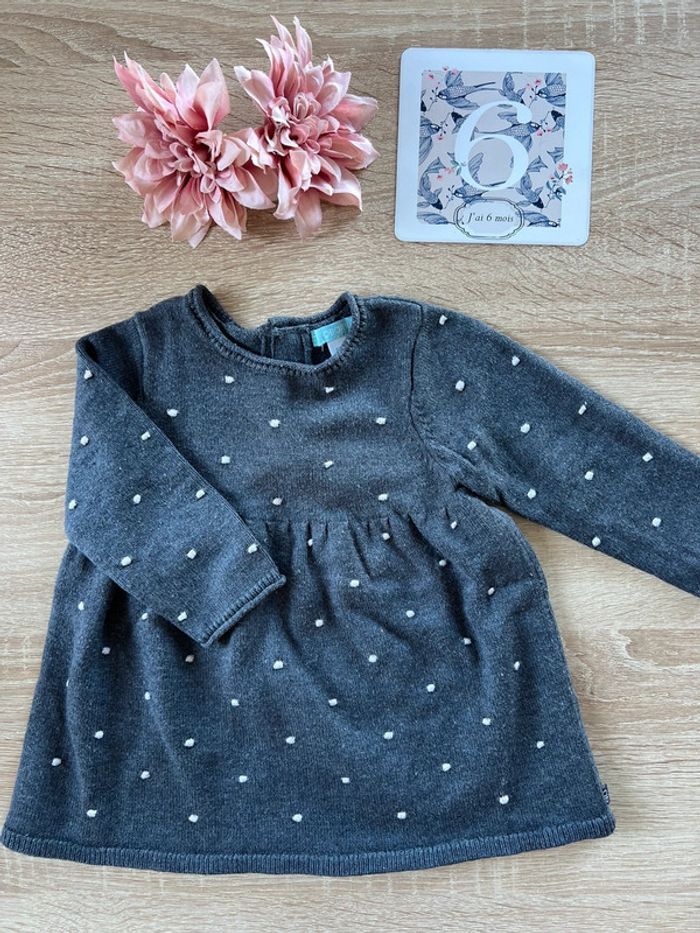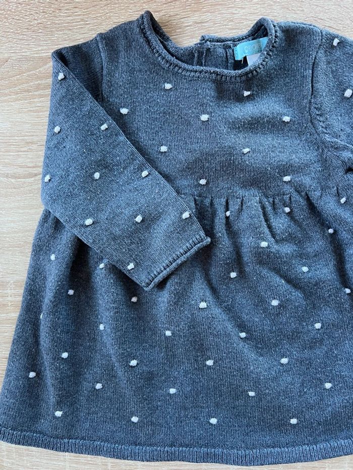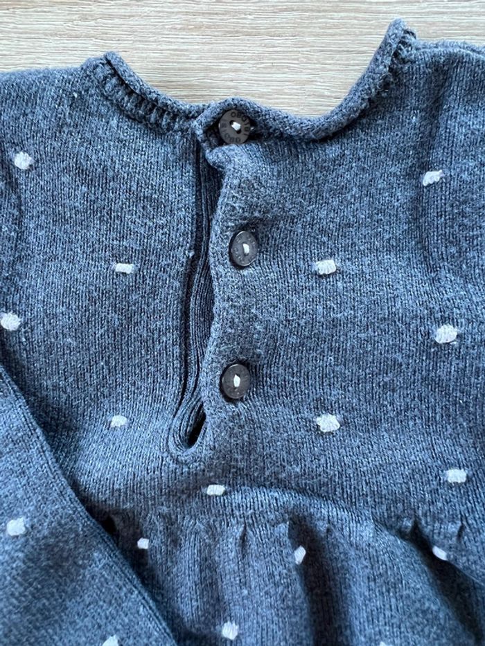 Robe épaisse grise à pois blancs Obaïbi 6 mois TBE - photo numéro 5