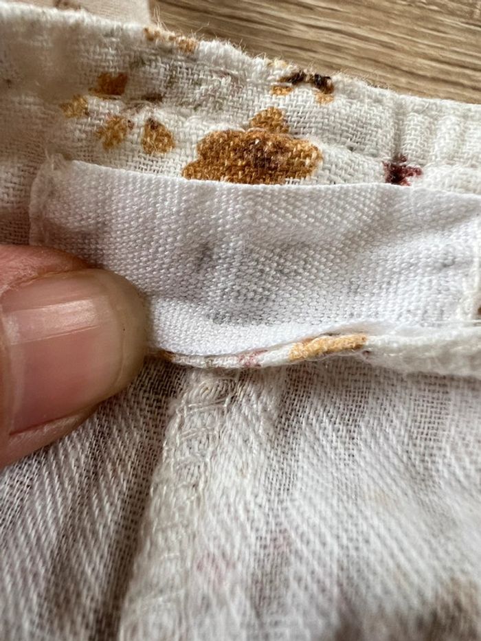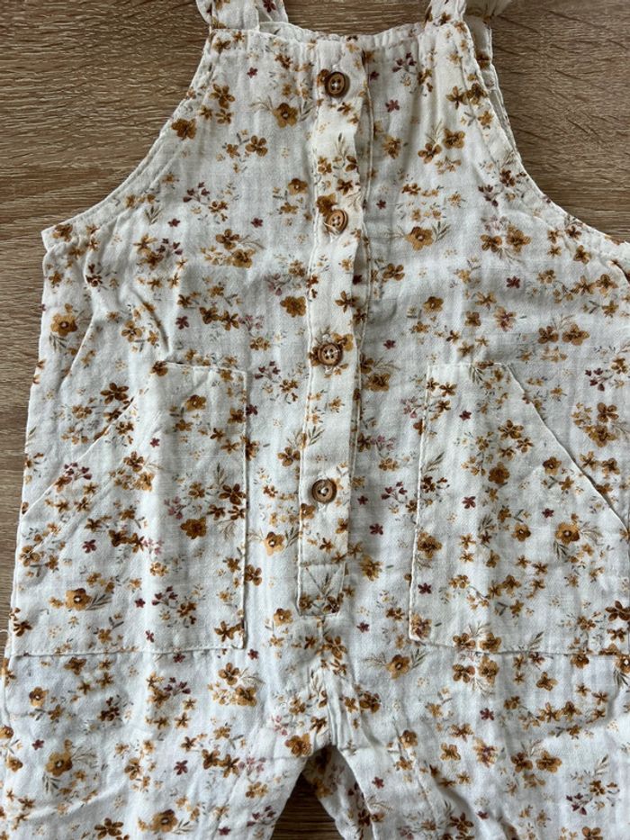 Jolie salopette blanc cassé avec fleurs marrons en gaz de coton 6 mois / 68 cm #MMfille6mois