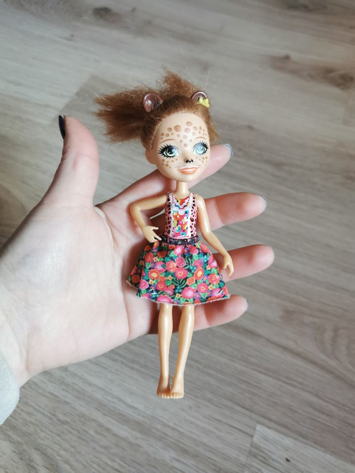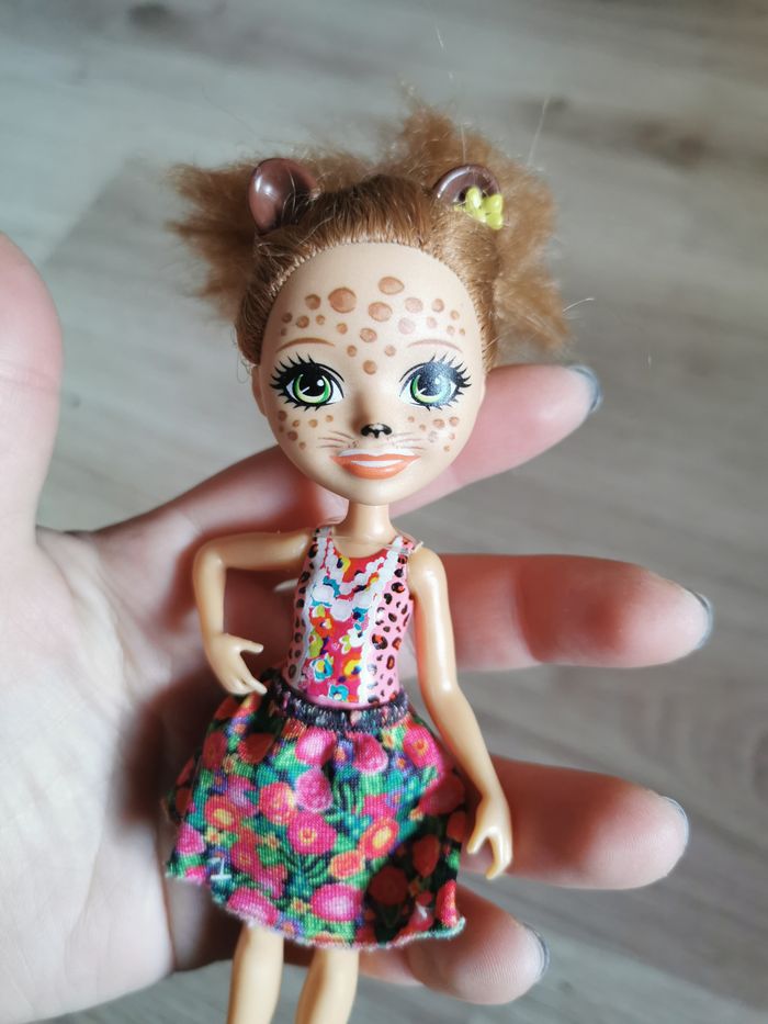 Poupée enchantimals léopard, Mattel 2016, petite poupée de 15 cm, poids 22g, en très bon état général, les cheveux sont un peu marqués.