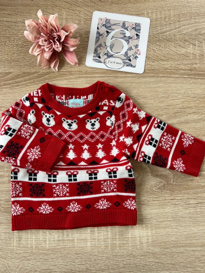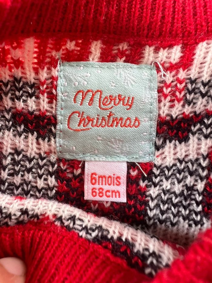 Joli pull de Noël rouge 6 mois / 68 cm #MMfille6mois #MMgarcon6mois