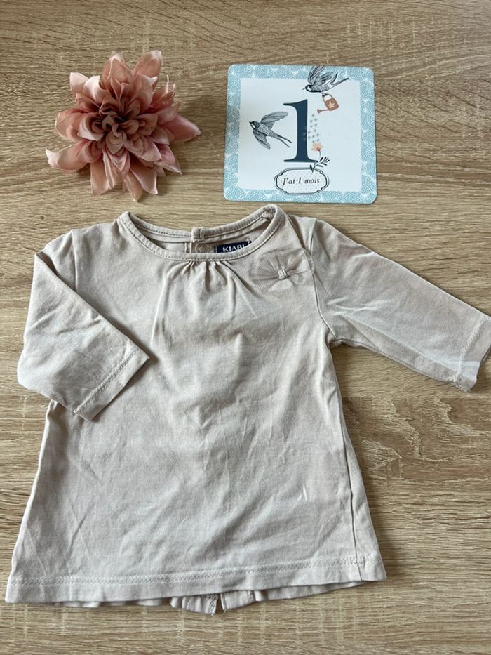 T shirt manches longues crème avec noeud Fermeture par pressions dans le dos 1 mois / 52-55 cm Très peu porté #MMfillemois #MMfille3mois